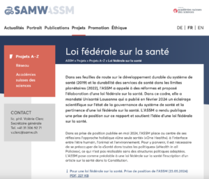 avoir une loi fédérale sur la santé. En mai 2024, l’ASSM a publié une prise de position en faveur d’une